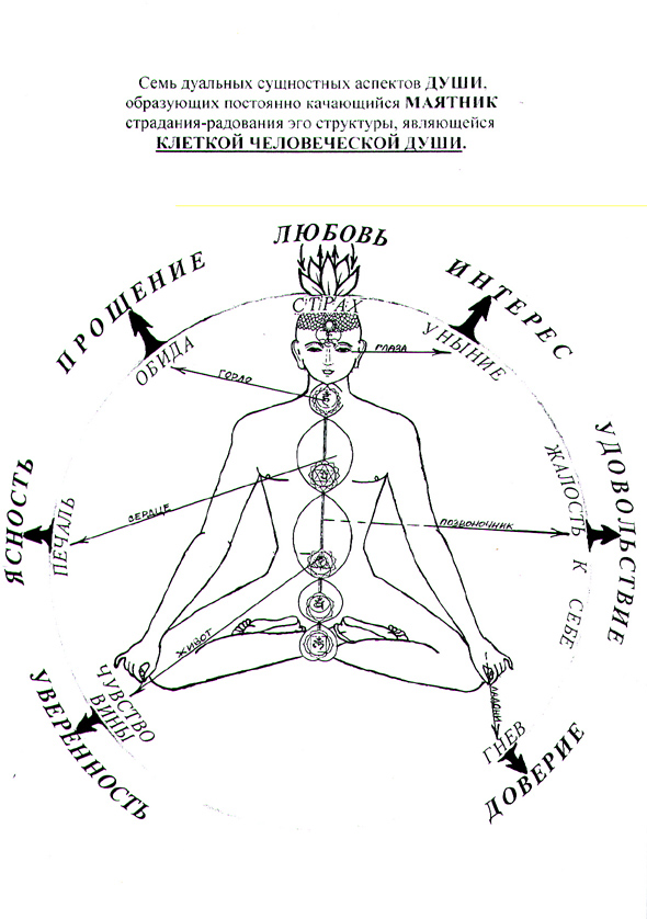 Семь дуальных сущностных аспектов ДУШИ, которые образуют постоянно качающийся маятник страдания-радования эго структуры, клетки человеческой ДУШИ.